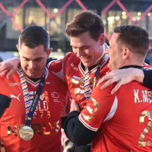 Det var ikke kun håndboldherrerne, men også deres familier og nærmeste, som blev inddraget i den glædelige fejring. Sikke en triumf! Søndag kunne håndboldherrerne kalde sig både…